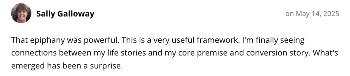 You'll walk away with the foundation of your Conversion Story crafted in under 20 minutes.